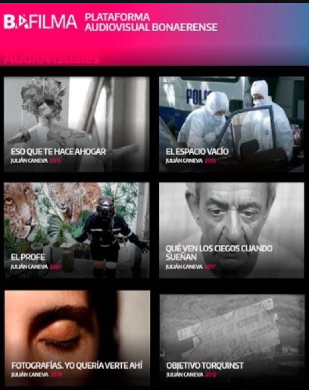 Los cortometrajes de Julian Cáneva no solo se ven en circuitos o muestras de festivales, muchos están alojados en la plataforma Audiovisual Bonaerense Bafilma que es gratuita.